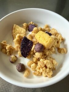牛乳で食べるのはあまり好きじゃないので、ヨーグルトに入れて食べてます