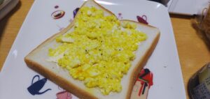 パンに乗せると見た目はいい感じ。味は豆腐です…。見た目と味が違うと知ってて食べていますが黄色い豆腐です。