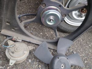 チェックしてみるとラジエター破損、ラジエターファン故障という悲しい事実でした。