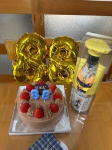 ケーキとプレゼントを用意して、米寿のお祝いです🥳✨