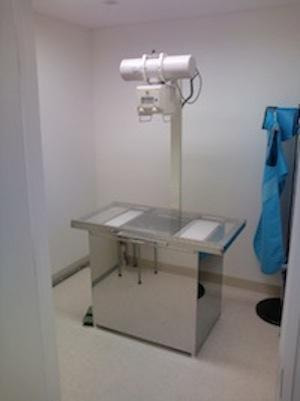 診察台を設置してあるので、色々な処置も行います。(写真は旧病院です)
